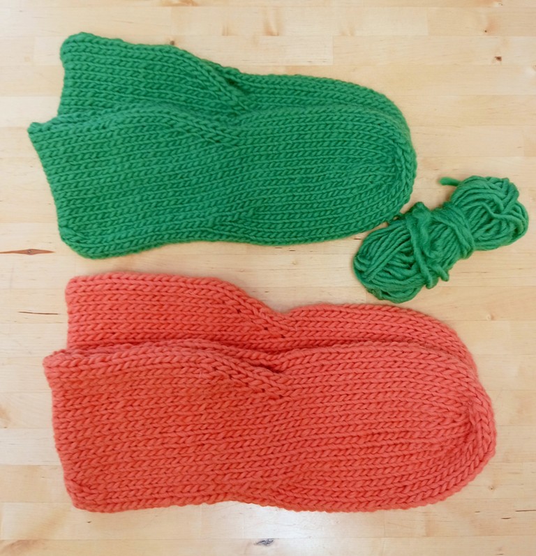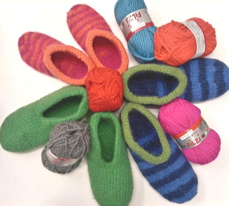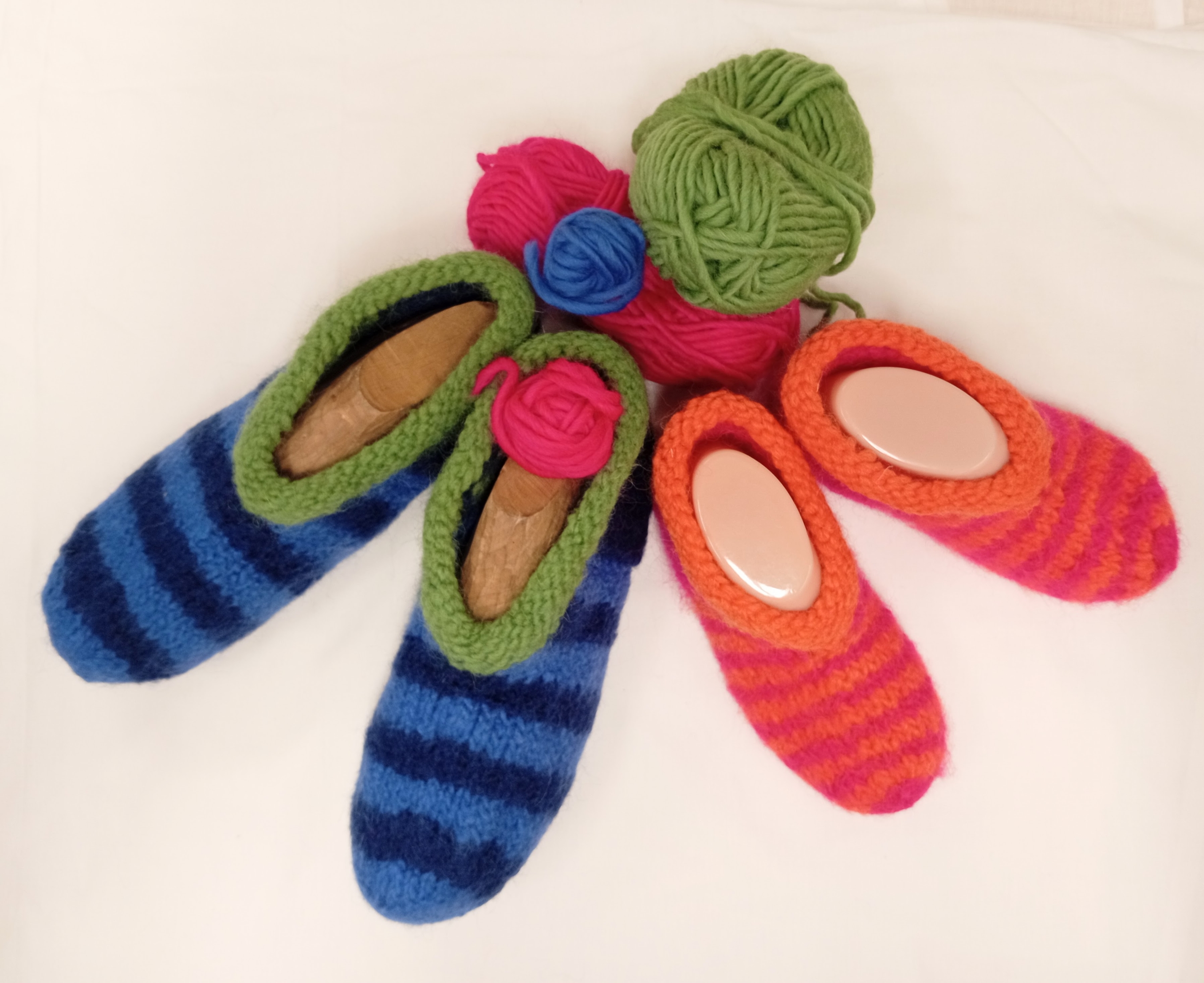 Kaksi ohjetta yhden hinnalla. Molemmat tossut neulotaan puikoilla nro 9 ja vanutetaan pesukoneessa.